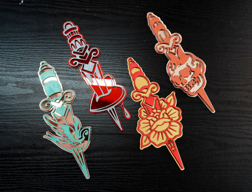 I’ve been working on a small collection of layered dagger signs, designed in a bold American Traditional style and made to hang proudly in your home, studio, or wherever you want a little extra edge. Each piece is built with depth in mind, using multiple layers of laser-cut wood or acrylic to give the designs a more dimensional, eye-catching feel.